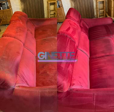 GINETTE, c'est la garantie d'un nettoyage professionnel de votre canapé pour des couleurs ravivées et un tissu propre sans odeurs.
